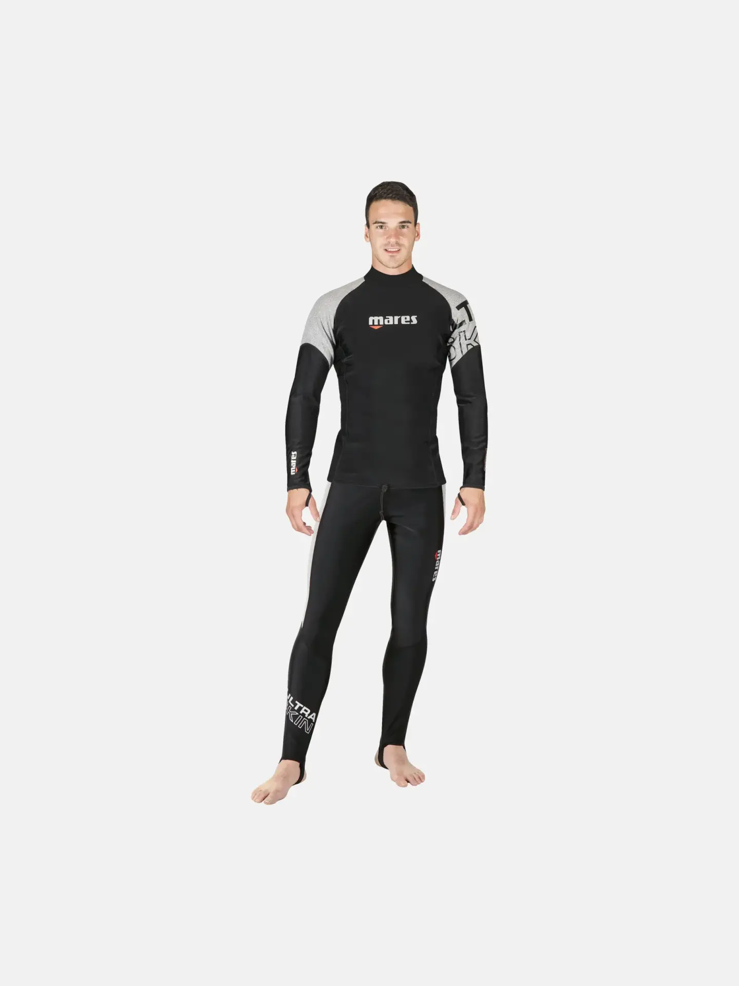 Sous-vêtements à manches longues pour hommes fabriqués avec la technologie Ultraskin. Parfait pour une utilisation sous les combinaisons humides et les combinaisons étanches pour une protection thermique supplémentaire. Convient également aux sports nautiques car il offre une protection contre les frottements légers.